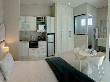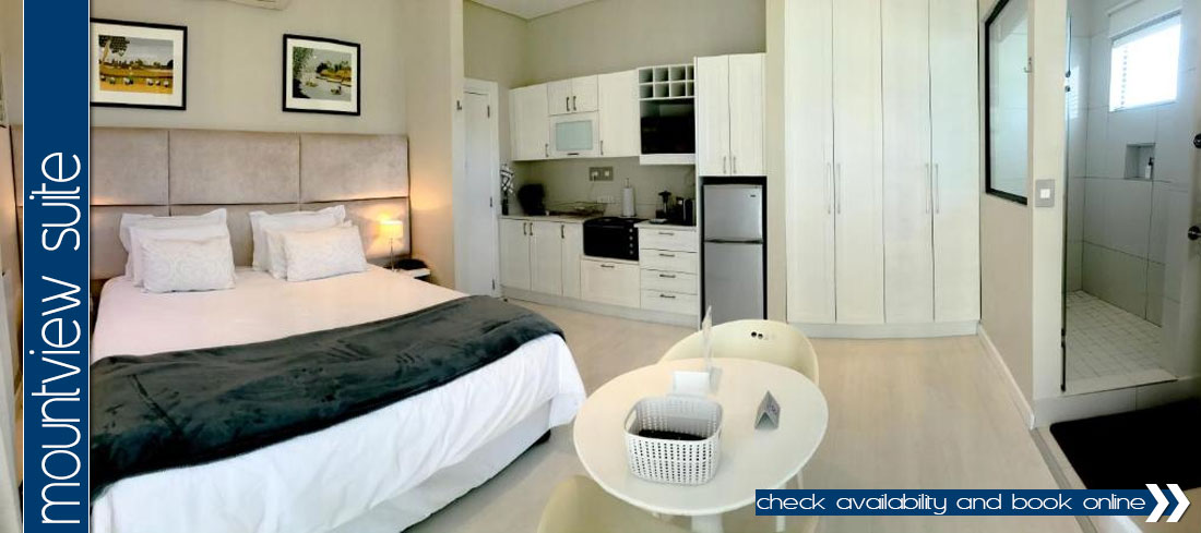 Mountview suite is a 1 bedroom suite (measuring approx. 35 square metres) and spans out onto a small balcony with mountain views (including Lions Head, Table Mountain and the cable car, and the 12 Apostles).